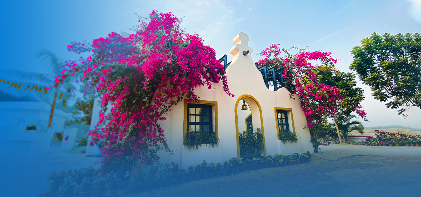 A world far from the ordinary. With soothing landscapes, serene spaces, and soulful hospitality, we have created Annaratna with a vision to bring the vibe of Santorini to our Shantiniketan. Our Resort is a blend of Mediterranean aesthetics with the soul of Bengal. Surrounded by endless green fields, rustling leaves, and the melodies of vibrant birds, Annaratna offers a peaceful, picture-perfect getaway from the noise and chaos of city life.